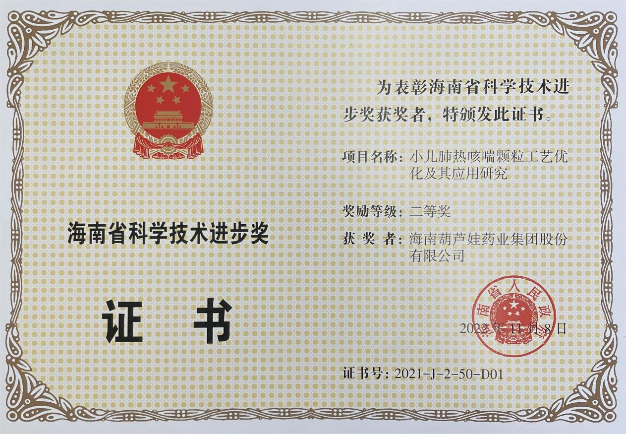 为此,小儿肺热咳喘颗粒的制备方法获得了第二十一届中国专利优秀奖(2019年),专利申请号:ZL201010134951,此次作为专利技术的应用,获得了2021年度海南省科学技术进步奖二等奖。在此之前,凯时KB88牌小儿肺热咳喘颗粒还多次被授予“临床价值中成药品牌”、“中国连锁药店最具合作价值单品”,荣登“中国医药品牌榜”。